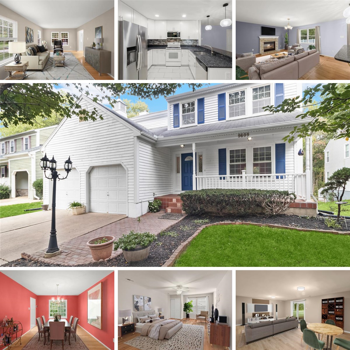 This well-maintained home is nestled in a peaceful cul-de-sac within the vibrant Columbia community, offering timeless charm, functional space, and modern updates. The main level features hardwood floors throughout, a welcoming covered front porch, and a classic layout with a formal living room and dining room. The spacious kitchen boasts granite countertops, white cabinetry, and a sunny breakfast area, while the adjacent family room includes hardwood flooring, a wood-burning fireplace, and classic brick surround, perfect for cozy evenings. Upstairs, the primary bedroom suite offers hardwood floors and a renovated en suite bath with a glass-enclosed shower, modern vanity, and stylish tile work. Three additional bedrooms and a full hall bath complete the upper level. The finished lower level includes a bedroom, full bathroom, a large recreation room with sliding door access to the backyard, plus a generous storage room. The laundry room is conveniently located on the main level and offers direct garage access. Prime location near major commuter routes, shopping, dining, parks, entertainment, and NO CPRA tax; this home has it all.