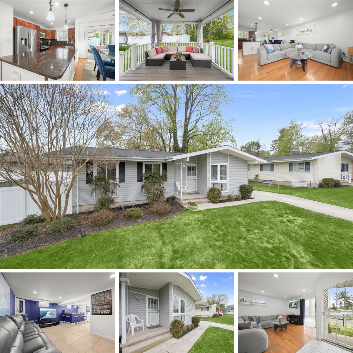 Beautiful detached rancher set on a premium lot in sought after Woodlands community. Enter through the covered front porch to the sun filled open floor plan that includes living and dining areas with hardwood flooring, and an updated kitchen, creating an inviting layout ideal for everyday living and entertaining. The chef's kitchen showcases a stunning ceramic tile backsplash, granite countertops, a large island breakfast bar, deep sunken sink, abundant counter space, and stainless steel appliances. The dining area features sliding door access to the expansive porch with composite decking, where you can relax and enjoy serene views of the private backyard. Hardwood floors continue through all three bedrooms. The main bathroom is beautifully appointed with a double sink vanity, tub/shower combination, and linen closet for added storage. The fully finished lower level provides exceptional additional living space, perfect for entertaining, complete with a bar and a second full bathroom. A versatile bonus flex room with a customized organization system, currently used as a large walk-in closet but could easily function as a den, office, or hobby room. This home is equipped as a fully integrated smart residence, intentionally curated for modern comfort, convenience, and security. A hard-wired four-camera exterior surveillance system paired with an alarm offers complete peace of mind, while an advanced smart thermostat with individual room sensors delivers precise, whole-home climate control. Remote-operated smart locks on both the front and rear doors provide effortless access and daily ease. A new roof installed in 2022 includes a transferable warranty for added confidence. Outdoor living shines on the spacious deck overlooking the peaceful, private yard. Ideally situated near major commuter routes, shopping, dining, and entertainment options, this home offers the perfect blend of comfort, convenience, and style.